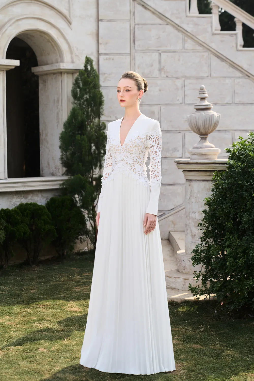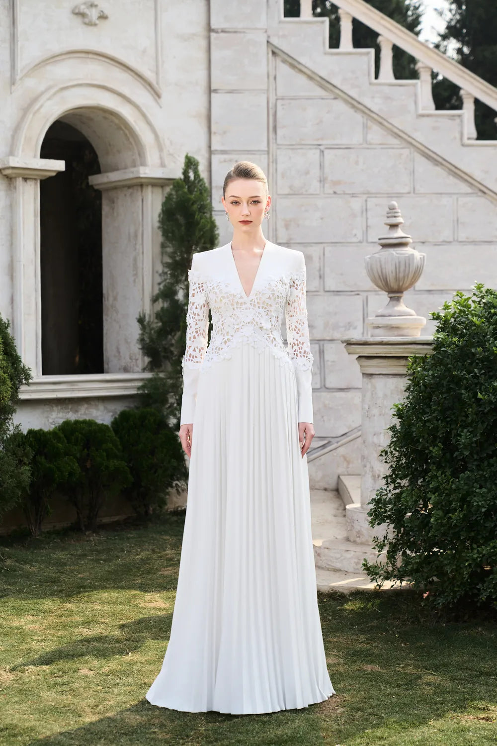 Short Cape Sleeve Floral Lace Pleated DressRegular price $1,198.00