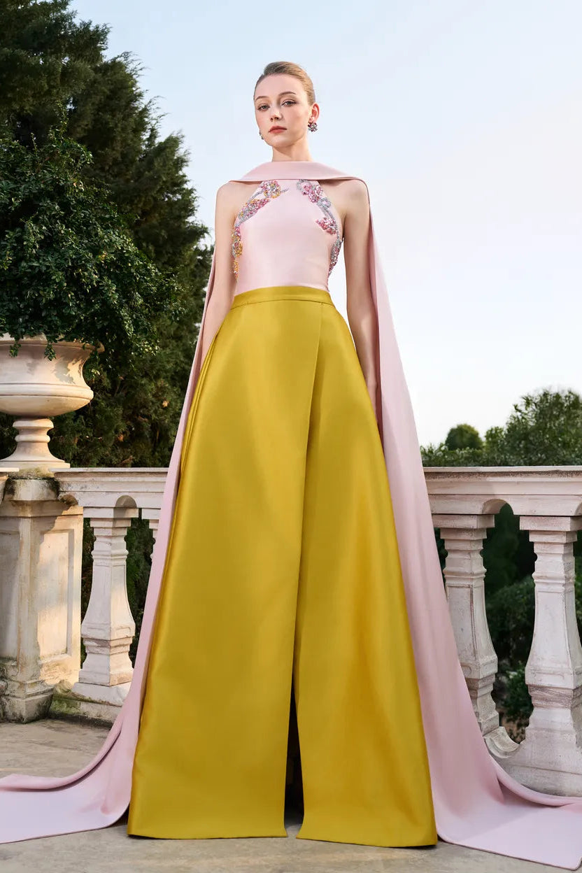 Wavy Cape Sleeve With Symmetric Crystal-Embellished Midi DressRegular price $1,481.00
