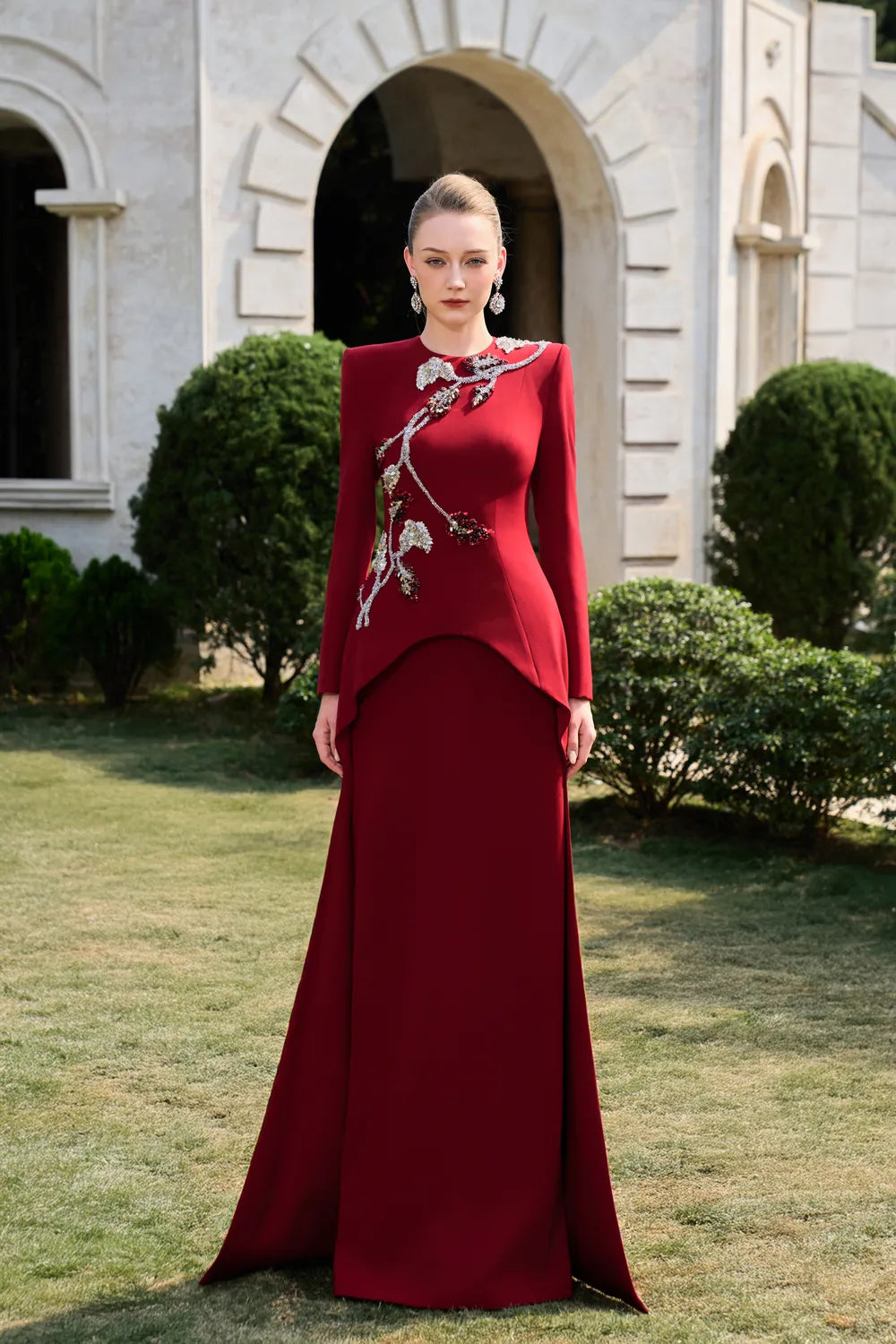 Padded Shoulder Floral Crystal-Embellished A-Line DressRegular price $1,258.00