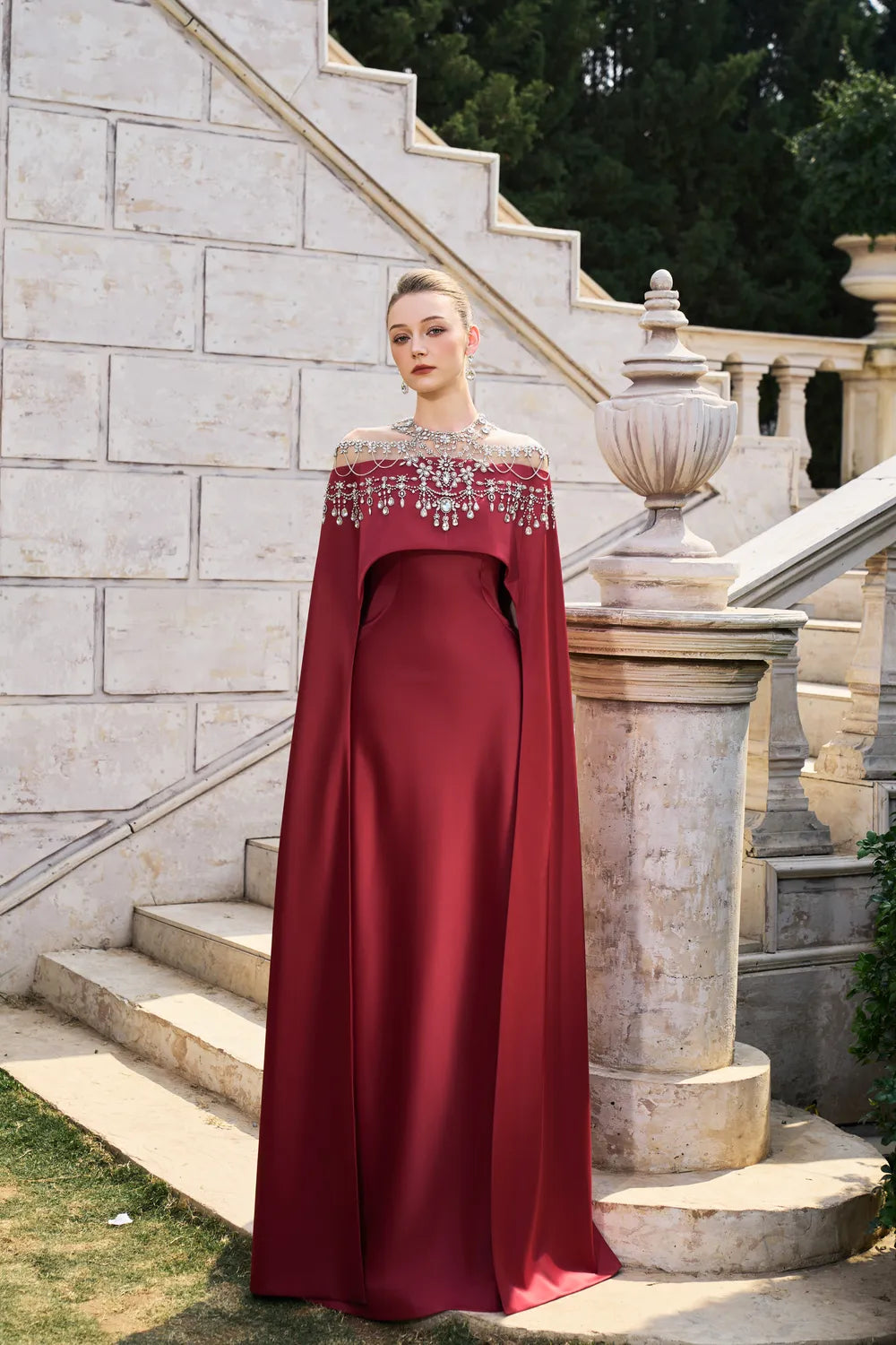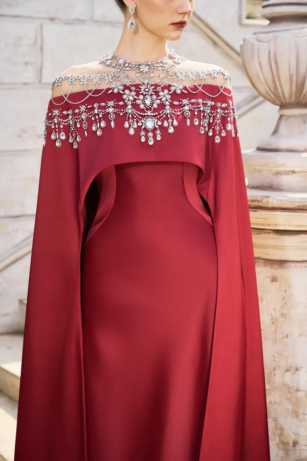 Crystal-Embellished See-Through Shoulder Long Flap Dress
