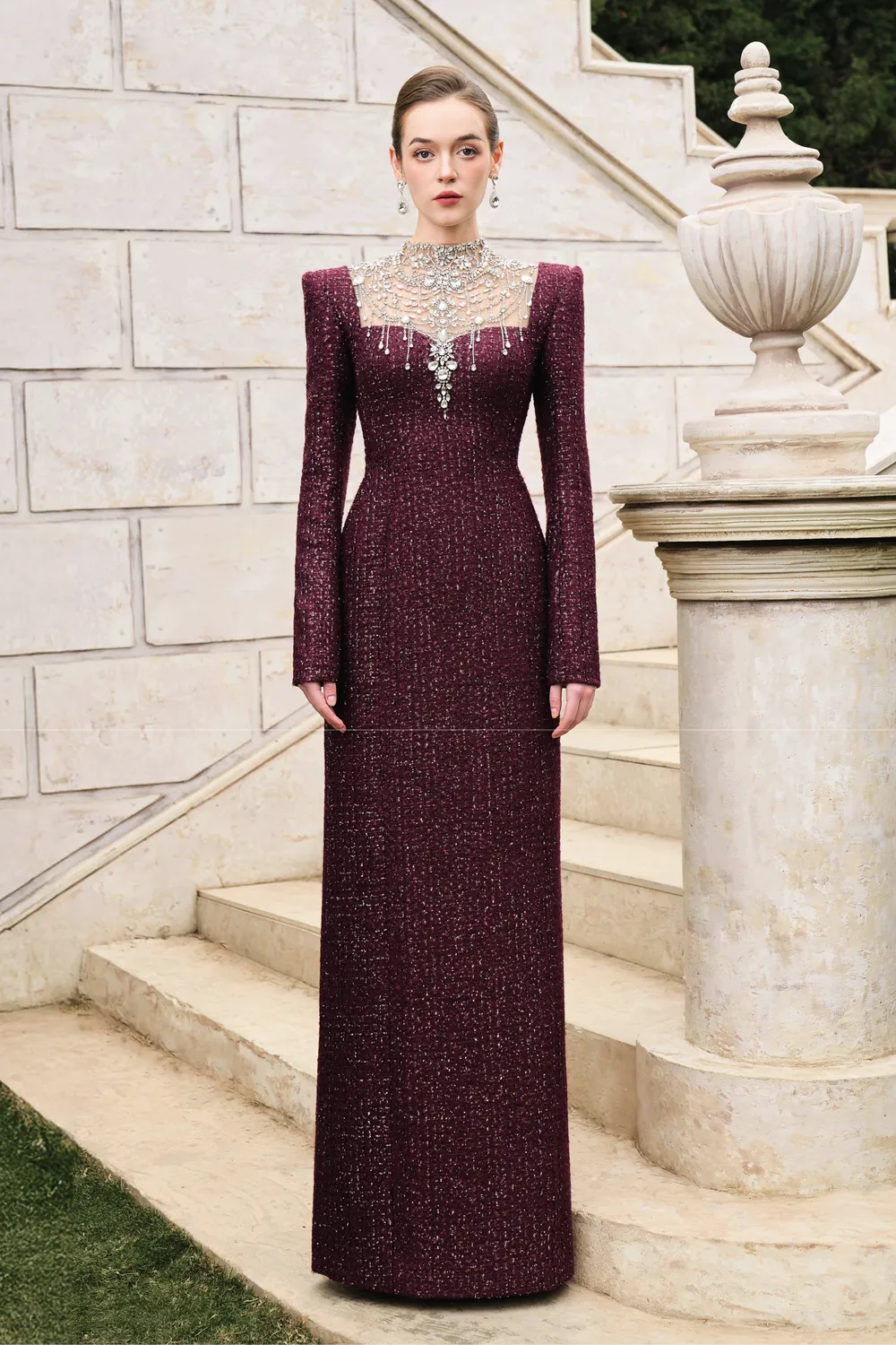 Diagonal Neck And Cut Out With Curved Crystal-Embellished DressRegular price $1,298.00