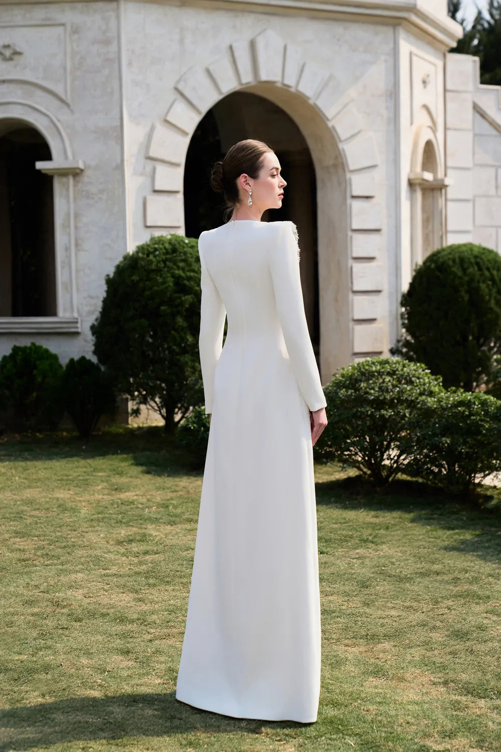 Padded Shoulder Floral Crystal-Embellished A-Line Dress