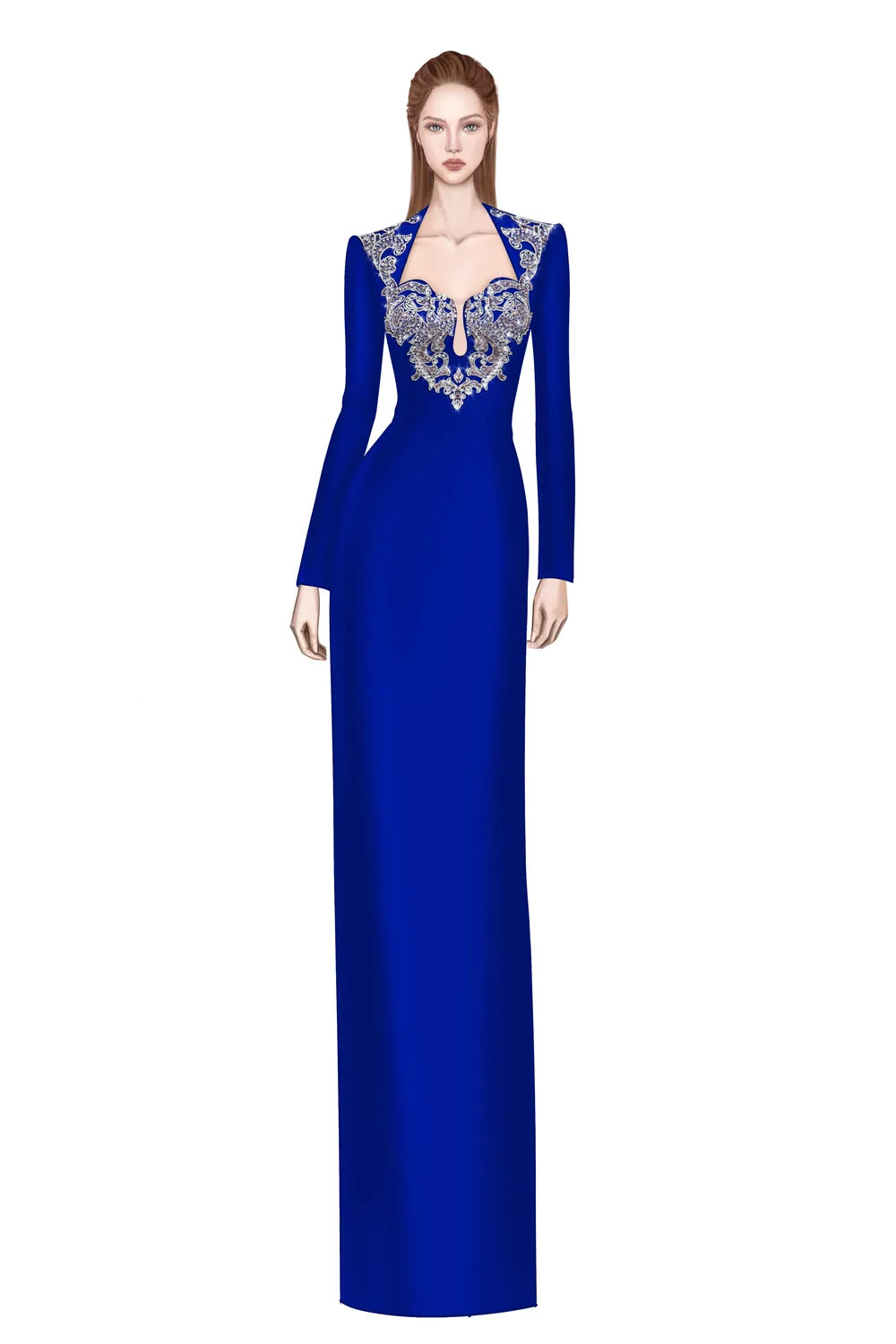 Long Cape Sleeve Stylized Crystal-Embellished DressRegular price $1,668.00