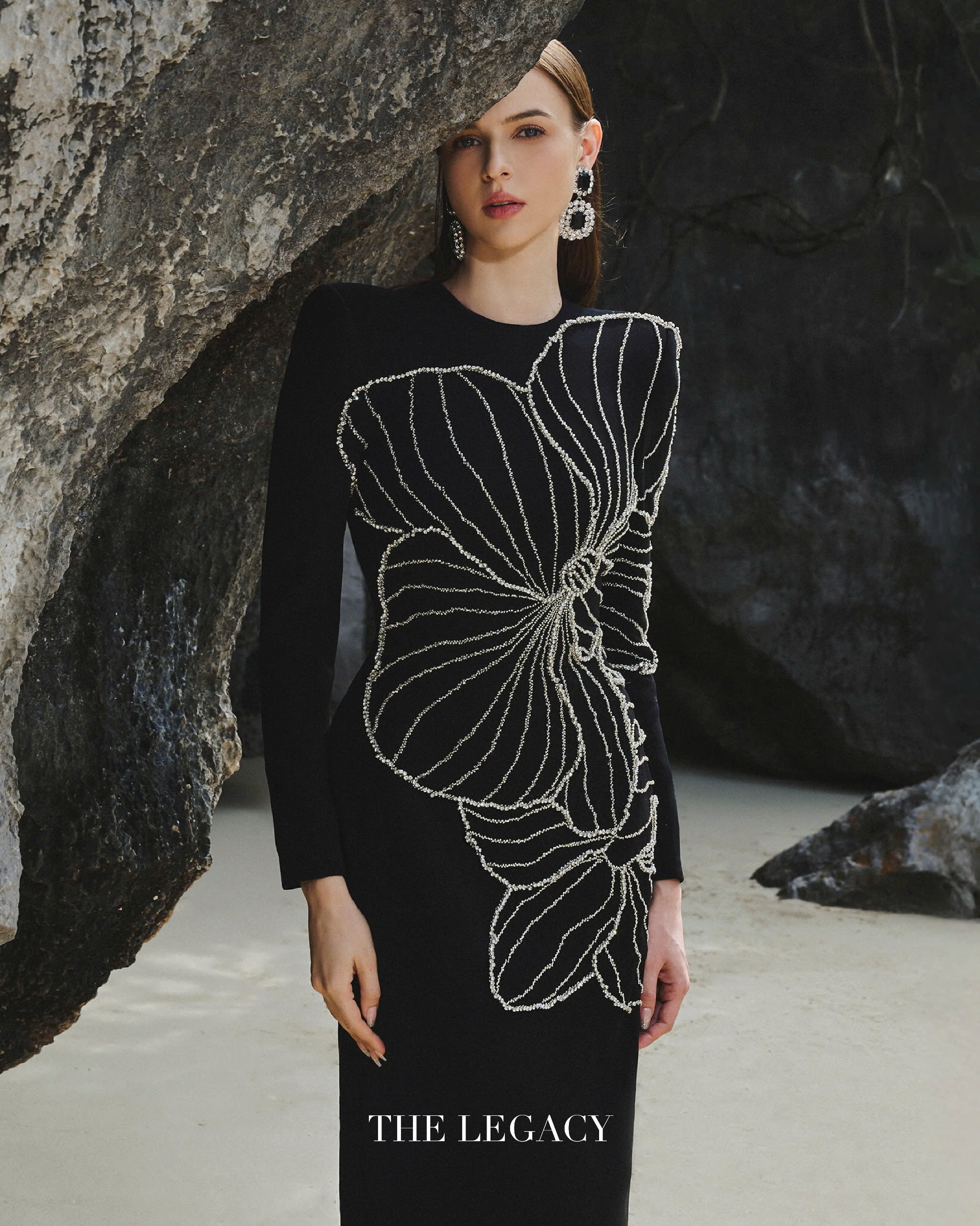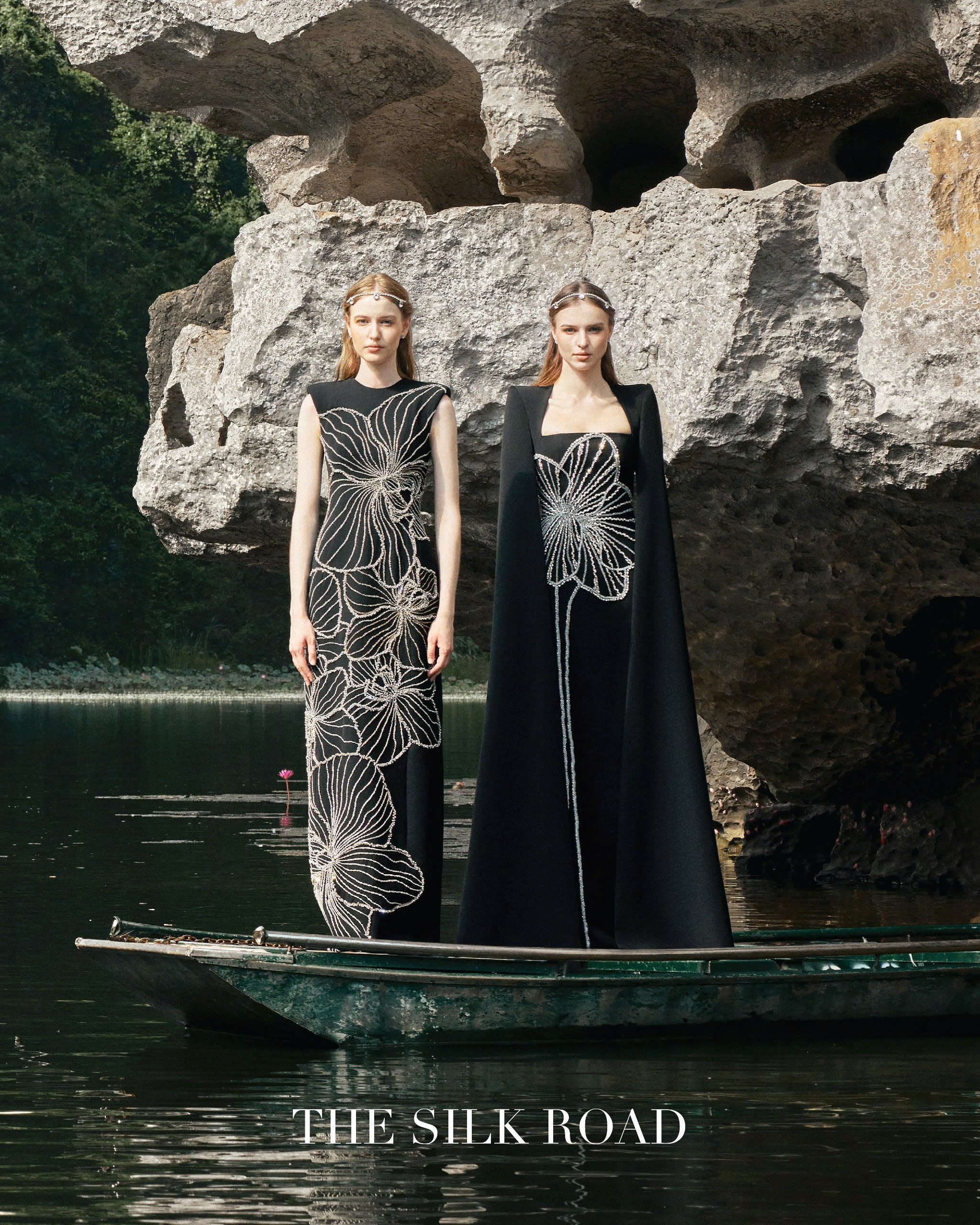 Jardin du Temps (The Garden of Time) is a collection that brings these enchanting gardens to life with intricate craftsmanship, including hand embroidery, beadwork, and sequins, depicting vines, foliage, and is meticulously tailored to create voluminous forms, soft pleats, and sharp cuts, evoking a design language that is both bold and refined, strong yet feminine.